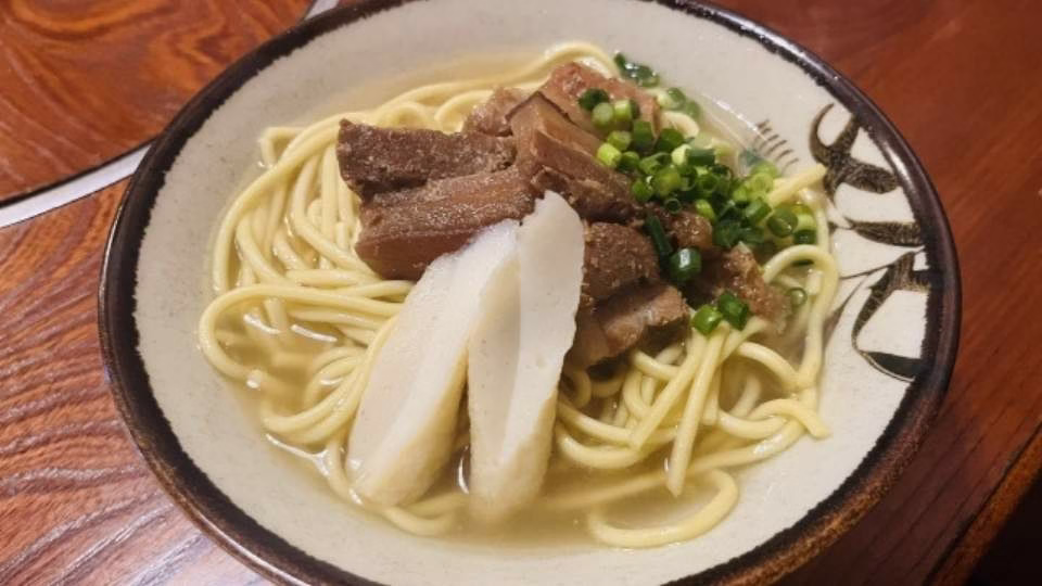 沖縄そばとは違い、丸くて細い麺と、細切れにした豚肉がトッピングされているのが特徴。カツオや豚骨ベースの優しいスープは、朝食やランチ、お酒の後の〆にもぴったり。地元のスパイス「ピパーチ(島胡椒)」をふりかけて、香りの変化も楽しんでください。
