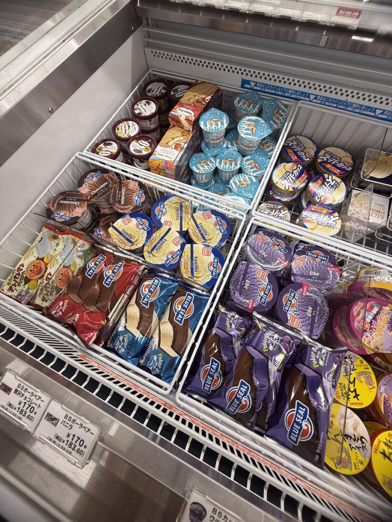 沖縄のアイスといえば、「BLUE SEAL」を思い浮かべる方も多いと思いますが、沖縄のコンビニには、BLUE SEALのアイスのラインナップが豊富。お手軽に食べることができます。