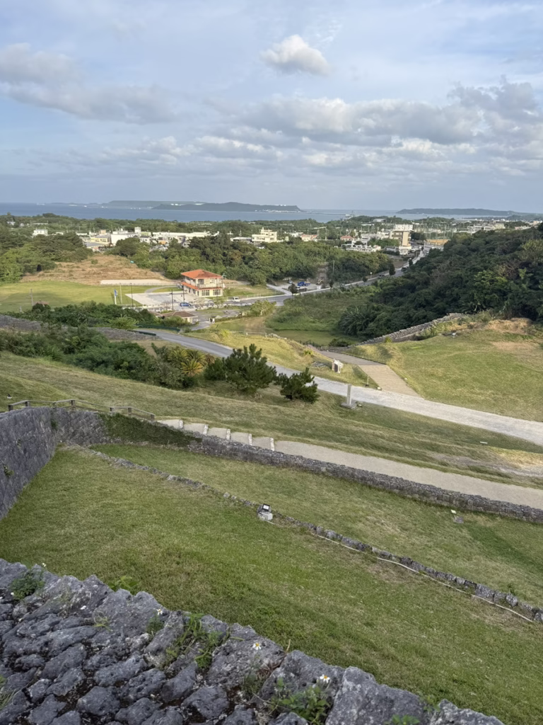 実際に城跡に立つと、東シナ海と太平洋の両方を望むことができ、この場所が選ばれた理由を、視覚的に理解することができます。