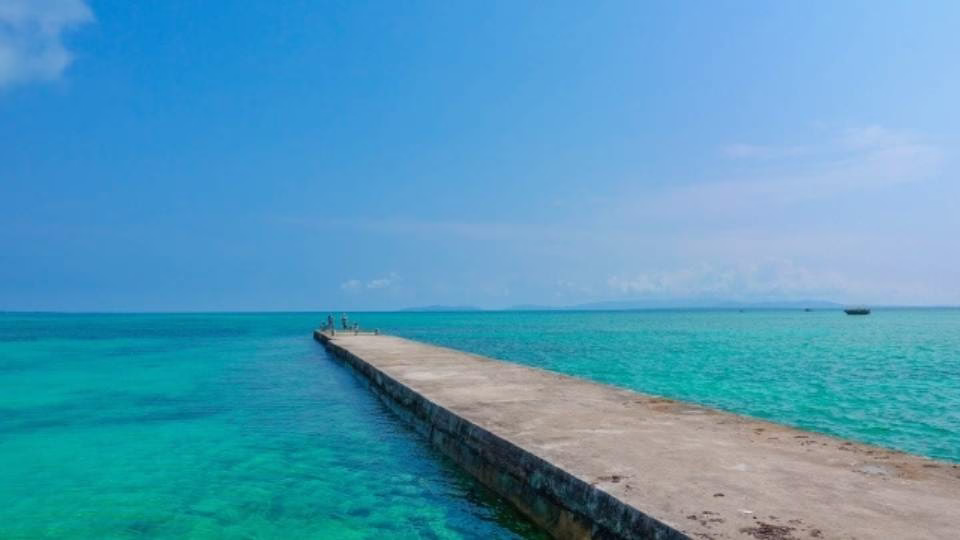 海に向かって真っ直ぐ伸びる全長354mの桟橋。満潮時はまるで海の上を歩いているような感覚に。SNS映え間違いなしのスポットです。