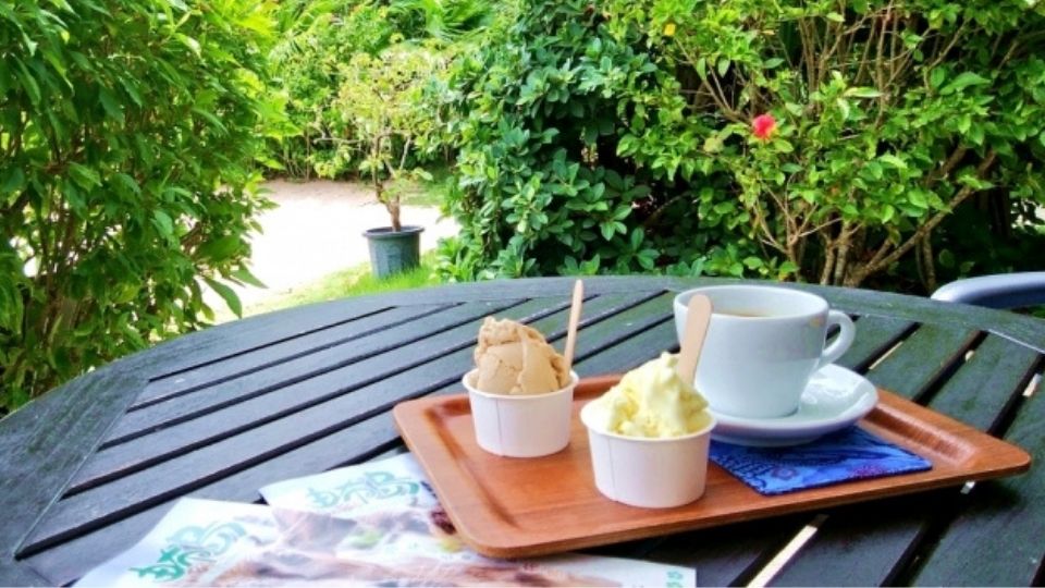 マンタの浜のすぐそばにあるカフェ。西表島産の黒糖やマンゴー、パインなどを使ったジェラートは絶品!海を眺めながら食べるのが最高です。