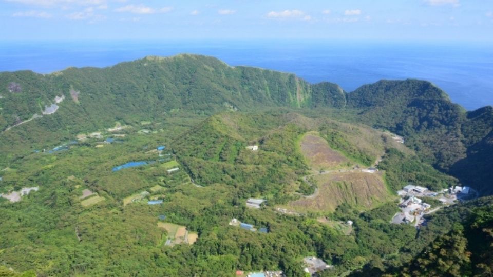 青ヶ島の最高地点「大凸部(標高423m)」。ここからの景色こそが、旅人が目指す「二重カルデラ」の全貌です。外輪山の縁に立ち、内側のカルデラ(丸山)を見下ろすと、火山の造形美に圧倒されます。