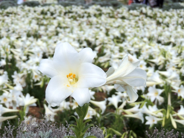 ここに、テッポウユリを中心とした約100万輪のゆりが咲き誇ります。