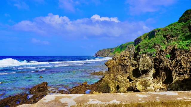 荒々しい地形と透き通る海のコントラストは、伊江島のもうひとつの顔です。