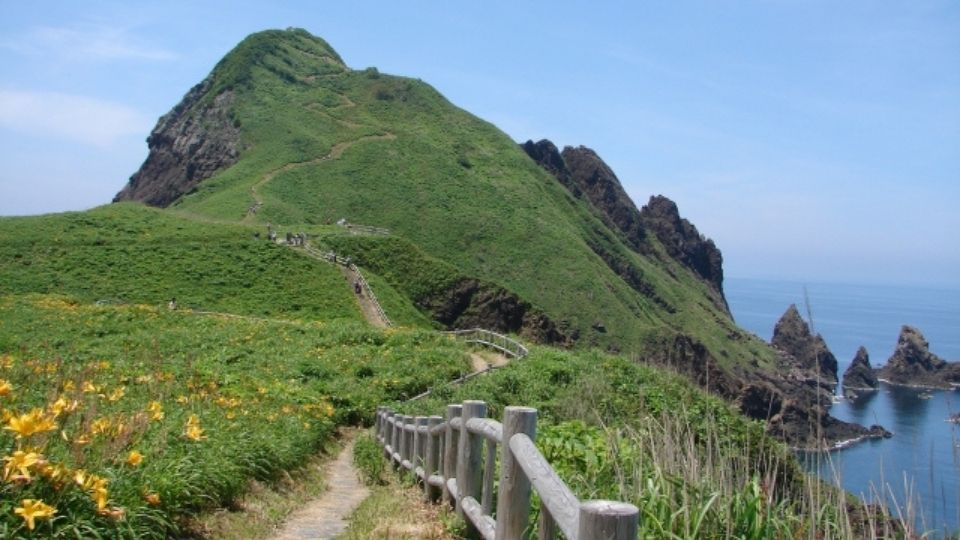 5月下旬から訪れる方にぜひおすすめしたいのが、島の北端にある巨大な岩山「大野亀」です。ここには、5月下旬から6月にかけて黄色い「トビシマカンゾウ」の花が絨毯のように咲き乱れます。青い海、巨大な岩、一面の黄色。これぞ佐渡というダイナミックな風景が広がります。