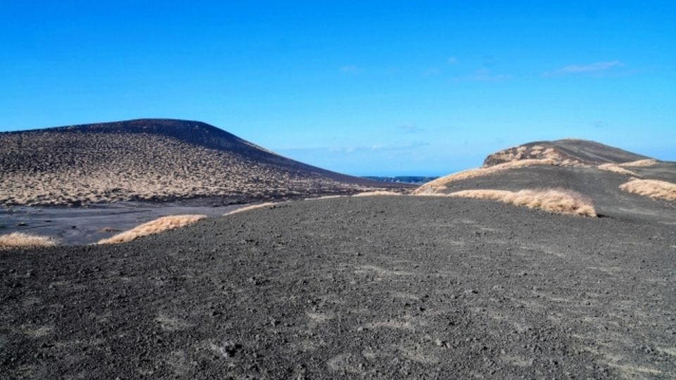 三原山の東側に広がる裏砂漠は、国土地理院の地図に日本で唯一「砂漠」と表記されている場所です。一面を黒い火山岩(スコリア)が覆い尽くし、植物がほとんど生えていないその光景は、まるでお隣の火星に迷い込んだかのよう。