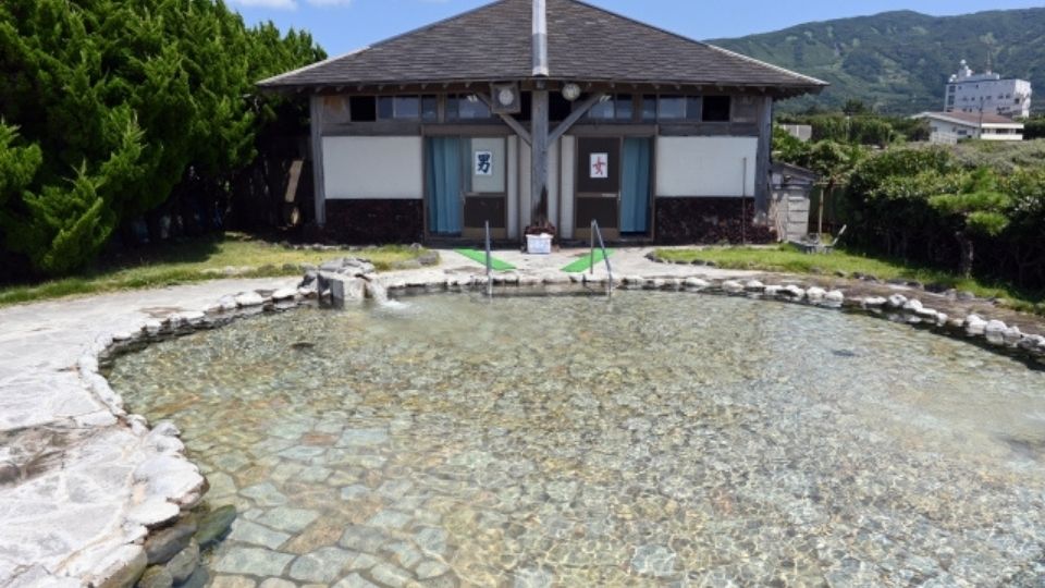 元町港から徒歩数分。「元町浜の湯」は、水着着用で入る男女混浴の公共露天風呂です。目の前には遮るもののない大海原。天気が良い日には富士山も見られます。特に初夏の夕暮れ時、水平線に沈む夕日を眺めながらの入浴は、言葉にできない解放感を与えてくれます。潮風を頬に受けながら、じっくりと体の芯を温める時間は、まさに大人旅の醍醐味です。